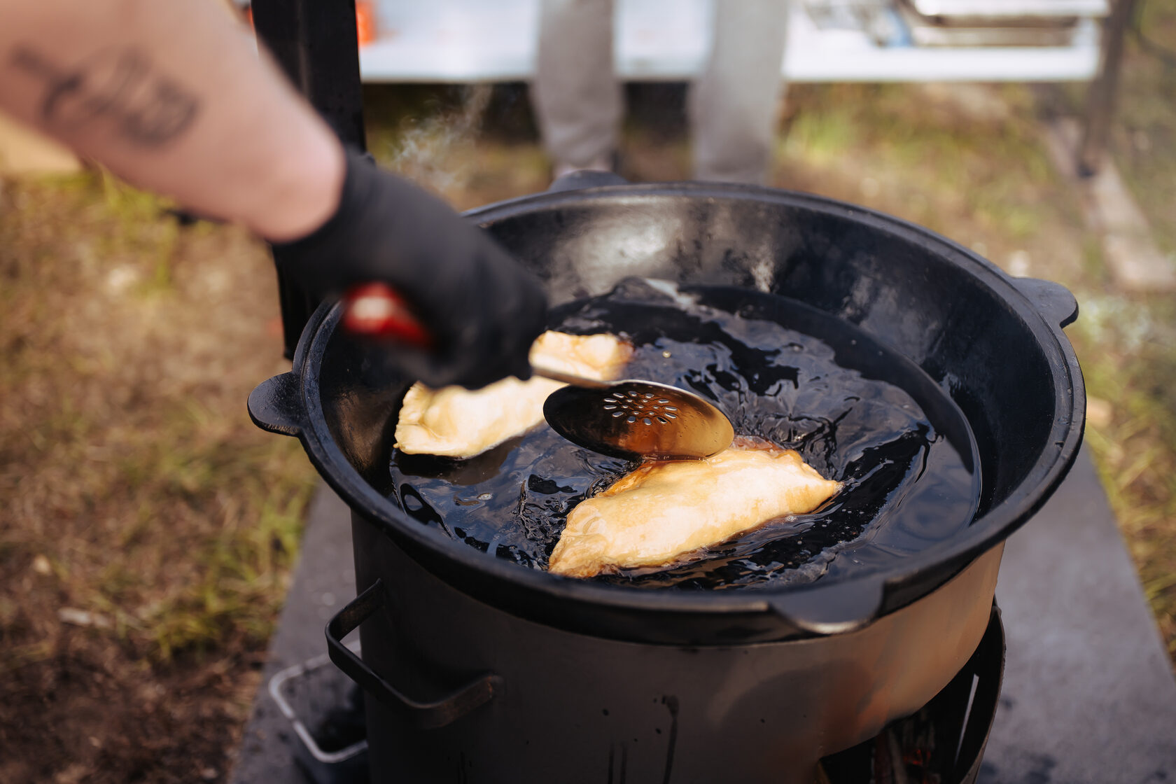 Чебурек «От Балтики до Баренца» — это гастрономический мост между двумя морями и двумя традициями. Внутри — балтийский судак, благородный и мягкий, и мурманская треска, плотная и сочная, —встреча двух морей в хрустящей оболочке.